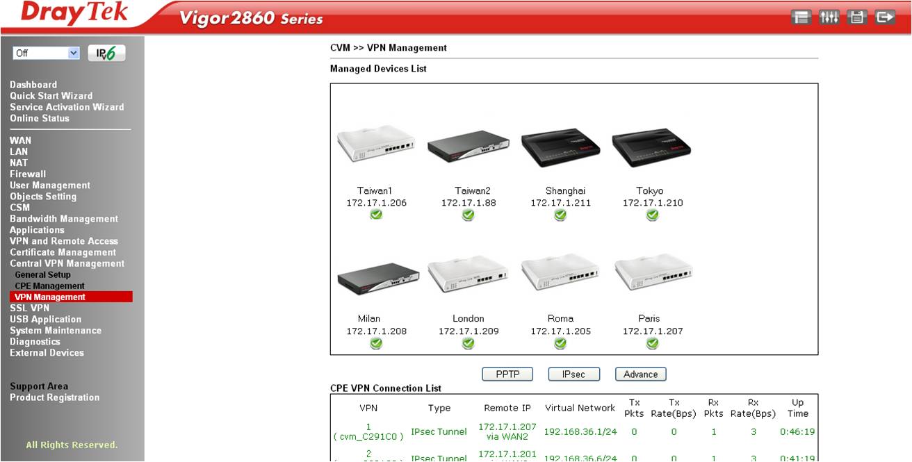 - Gömülü VPN yönetimi üzerinde 8 adet Vigor Router’ı kontrol edebilirsiniz.