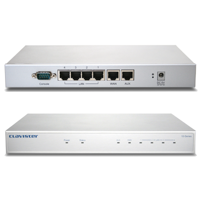 Clavister Güvenlik Geçidi 10 serisi düşük maliyetli yönetilebilir güvenlik servis sağlayıcıları için abone uç cihazıdır. Bütün Clavister güvenlik ürünleriyle aynı özellikleri içinde barındırır.