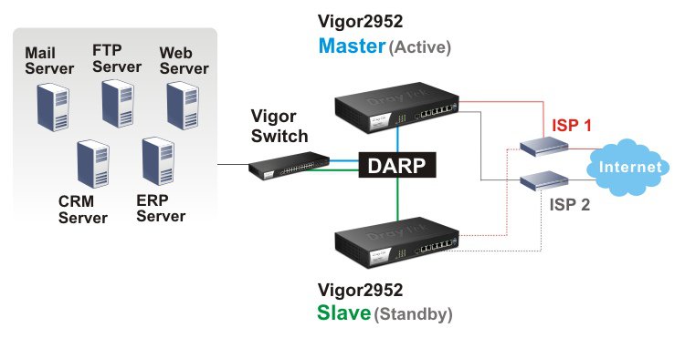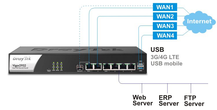 DrayTek Vigor2952 serisi yüksek performanslı yeni nesil iki adet (Dual) WAN portu bulunan Load Balance ve Fail Over yapabilen kurumsal bir Security Gateway 'dir. 4 Gigabit Ethernet LAN portu, IPv4 / IPv6 desteği, 100 adet eşzamanlı (50 SSL VPN tüneli de dahil olmak üzere) VPN tüneli desteği. QoS ile Bant Genişliği Yönetimi 8 seviyeli öncelik Gelen / Giden, Kolay ve kapsamlı merkesi AP ve VPN yönetimi.