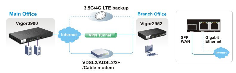 DrayTek Vigor2952 serisi yüksek performanslı yeni nesil iki adet (Dual) WAN portu bulunan Load Balance ve Fail Over yapabilen kurumsal bir Security Gateway 'dir. 4 Gigabit Ethernet LAN portu, IPv4 / IPv6 desteği, 100 adet eşzamanlı (50 SSL VPN tüneli de dahil olmak üzere) VPN tüneli desteği. QoS ile Bant Genişliği Yönetimi 8 seviyeli öncelik Gelen / Giden, Kolay ve kapsamlı merkesi AP ve VPN yönetimi. 802.11n 2.4Ghz desteği