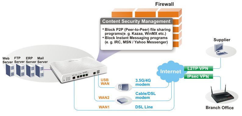 - Dosya paylaşımı için Samba'yı destekleyin (DrayTek'in kendi SMB protokol yığını)