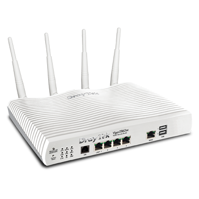 Vigor2862 serisi, güvenli ve verimli çalışma grubu yönetimi için çoklu alt ağa sahip bir ADSL2 / VDSL2+ yönlendiricidir. Kullanıcıların kontrolünün geniş bant genişliği ile iyi çalışmasına yardımcı olmak için IP katmanı QoS, NAT oturumu / bant genişliği yönetimini entegre eder. AES / DES / 3DES donanım tabanlı VPN platformunu ve donanım şifrelemesini ve SHA-1 / MD5'in donanım anahtarı karmasını kabul ederek, VPN performansını büyük ölçüde artırır ve çeşitli protokoller sunar (örn. IPSec / PPTP / L2TP) 32'ye kadar VPN tünel desteği mevcuttur. Entegre IEEE 802.11ac Kablosuz erişim noktası desteği, 1 adet ADSL2/VDSL2, RJ-11 (WAN-1), 1 adet 10/100 / 1000Base-TX, RJ-45 (WAN-2) (standart için), 4 adet 10/100 / 1000Base-TX LAN, RJ-45, Port4'te Yapılandırılabilir Fiziksel DMZ, 4 adet Sökülebilir Antenler, 2 adet USB Host 2.0.