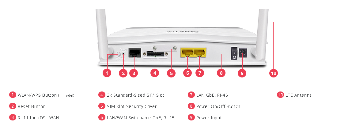 Ev ve küçük ofis kullanıcıları için geliştirilmiş, üzerinde failover çalışan 2(iki) adet gömülü SIM yuvası bulunan, birisi gerektiğinde ikinci WAN (Ethernet) portu olarak ayarlanabilen iki adet Gigabit Ethernet portu, bir adet ADSL2/VDSL2 WAN portu bulunan 4G/LTE VPN yönlendiricidir. 2.4Ghz 802.11b/g/n WiFi LAN desteği mevcuttur.