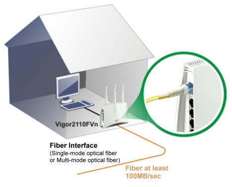 Draytek Vigor 2110F Broadband VoIP VPN Wireless Fiber Router (FTTH) (100FX LC/SC Single Mode Fiber Modul - Tip SFF (20Km)) (Proje Bazlı Fiyatlandırma Yapılır)