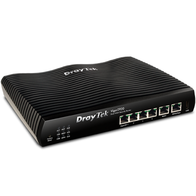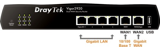 Vigor 2920 iki Ethernet WAN’ı olan bir yönlendiricidir. WAN portlarından bir tanesi GigaBit (150Mbps) diğeri 100Mbps Hızındadır.WAN portları arasında yük dengeleme ve yedekleme yapılabilir. 32 adet VPN Tünel sonlandırabilir.