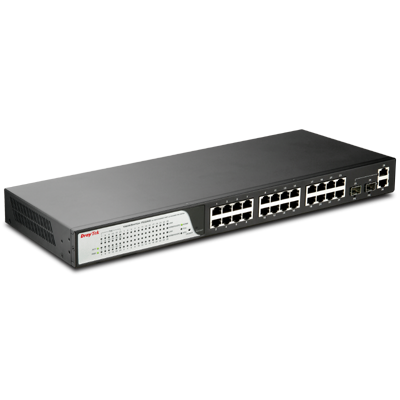 24 adet 10/100Base-T, 2 adet Gigabit Ethernet, 2 adet SFP yuvası bulunan, 8K MAC, 4K VLAN, VSM (Virtual Stack Managament) destekli Non-Blocking Power over Ethernet Switch. Bandwith managament, trunking, 802.1X desteğine sahiptir.