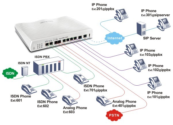 IP Telefonlar, VoIP Gateway 'ler ve benzeri VoIP Donanım ve Yazılımları ile entegre çalışabilen, aynı zamanda ADSL arayüzü bulunan, gerektiğinde ikinci WAN portu ile bağlantı sağlayabilen ve hatta 3G (3,5G olarak ta anılır) Modem vasıtası ile GSM şebekesi üzerinden de internet bağlantısını sürekli kılan bir modem, router, IPPBX, Firewall, İçerik Güvenlik cihazı olan Vigor IPPBX 2820, yeni nesil bir IP Telefon Santralidir. Ağınıza internet erişimi verirken aynı zamanda alternatif operatörler ile tam uyumlu çalışabilen Draytek Vigor IPPBX 2820, aynı zamanda 6 ayrı SIP operatörü ile beraber çalışabilir. Ayrı tarifeler için ayrı kurallar uygulanabilir ve telefon harcamalarınız kontrol altına alınabilir. İşyerinize ait farklı ofisler arasında internet üzerinden telefon ağı kurabilir ve birbirleri ile entegre edebilirsiniz.