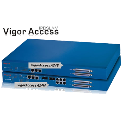 VigorAccess A24 IP DSLAM yeni nesil teknolojilere uyumlu ADSL erişim konsantratördür. Bakır altyapı üzerinden, daha esnek, daha geniş, entegre servisleri çalıştırmak için en ideal çözümdür.Hotel Internet, Video Transfer, VoDSL, POTs, IPTV gibi çözümlere altyapı sunar.24 adet ADSL hat sunar.