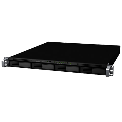 Orta ve Büyük Ölçekli Şirketler için Yüksek Performanslı 4 adet SATA Yuvalı RackMount NAS Sunucusu. Intel Atom D510 Dual Core 1.67GHz CPU, 1GB RAM, 4 adet Internal 3,5" SATAII HotSwappable HDD Yuvası, 2 adet USB ve 1 adet eSATA Arayüz, Maksimum 20 adet IP Kamera Desteği, 2 adet Link Aggregation destekli Gigabit Ethernet, FTP, Kriptolanmış Ağ Yedekleme, EXT3 desteği, Harici Disk için FAT, NTFS desteği, maksimum 2048 adet kullanıcı ve 256 adet kullanıcı grubu tanımı, 256 adet paylaşım klasörü, 512 adet aynı anda bağlantı desteği, maksimum 2 adet yazıcı paylaşım desteği. Türkçe kolay web arayüzü. Windows ADS ve DataReplicator 3 desteği. Domain kullanıcıları Samba/AFP/FTP ile girebilir. JBOD, Raid 0/1/5/5+Spare/6/10 desteği. Synology RX410 ile kapasite artırma desteği. External HDD Hibernation.