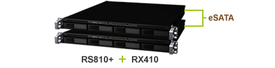 Synology RX410 delivers an effortless solution for volume expansion and data backup for Synology RackStation RS812/RS812+/RS812RP+. The RX410 seamlessly scales up the storage capacity of the Synology RS812/RS812+/RS812RP+ by an additional 4 hard drives on-the-fly when connected directly to the Synology RS812/RS812+/RS812RP+.
