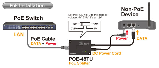 AirLive POE-48TU 802.3af PoE Splitter with Switchable Output